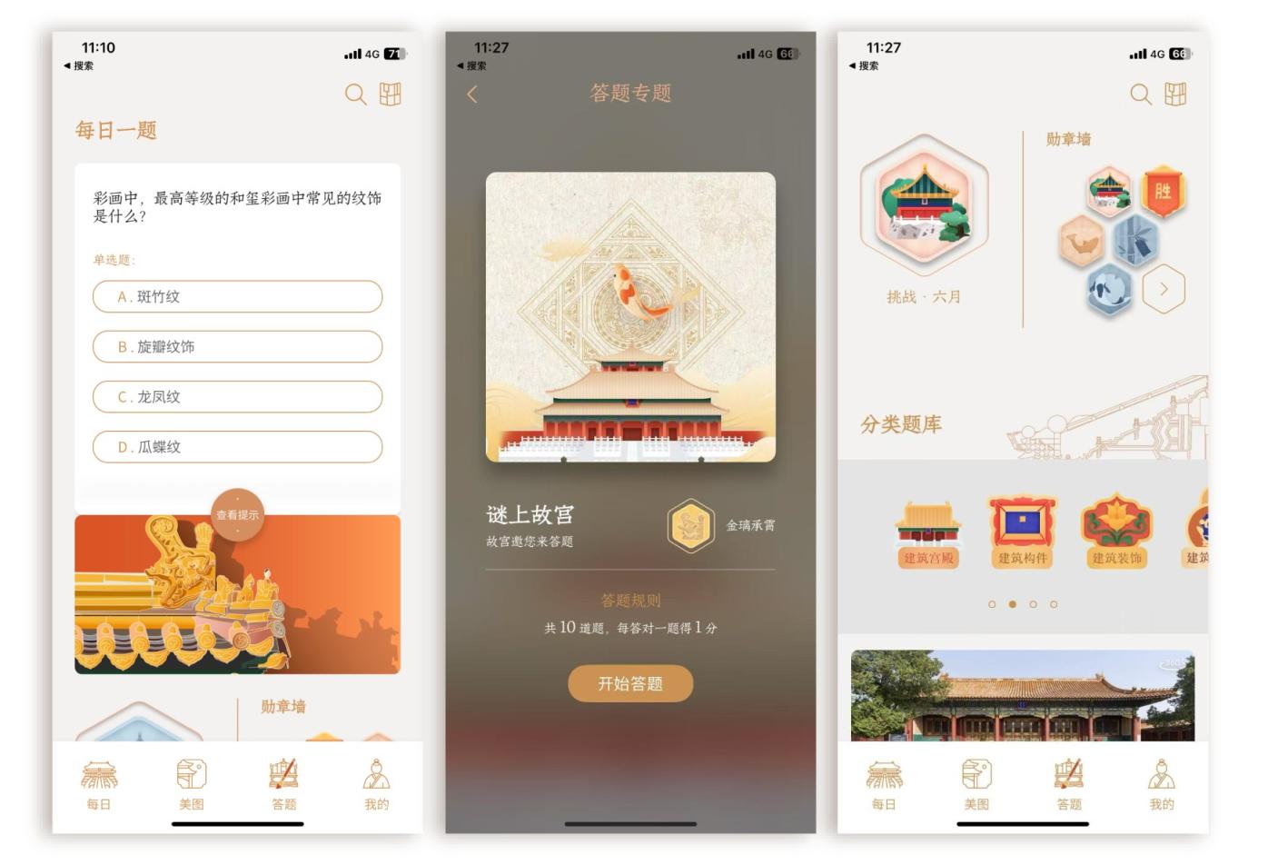 为提升学习过程的互动性与趣味性, 应用内置了“建筑知识每日一题”及主题题库挑战。公众在答题闯关的过程中,可检验学习成果,并解锁设计精美的限量成就徽章。这种游戏化的学习机制,在普及文化遗产知识的同时,也拉近了古老文明与当代生活的距离。